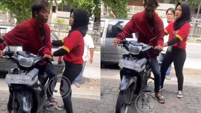 Fani masih berusaha menghadang meski pelaku telah berada di atas motor dan berjalan berbelok.