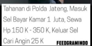 “Awal masuk ditahan di Polda semua bayar kamar dikenakan Rp 1 juta. Terus kalau mau keluar dari sel harganya Rp 25.000, namanya angin-angin dari jam 4 sore sampai jam 7 malam,” aku Pria dalam video tersebut.