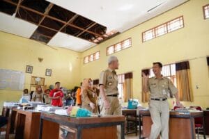 WONOGIRI, liputanbangsa.com – Ruang kelas dan ruang guru di SMPN 1 Giriwoyo Wonogiri mengalami kerusakan cukup parah akibat gempa berkekuatan 6,6 SR di Bantul, pada Jumat (30/6/2023). Ada banyak tembok dan pilar bangunan sekolah yang retak sehingga cukup membahayakan. Gubernur Jawa Tengah, Ganjar Pranowo yang meninjau lokasi pada Senin (3/7/2023) meminta agar bangunan segera diaudit. … Lanjutkan membaca Cek Kondisi Sekolah di Wonogiri Pasca Gempa, Ganjar Minta Tim Assessment Segera Audit Kelayakan Gedung – Liputan Online Indonesia