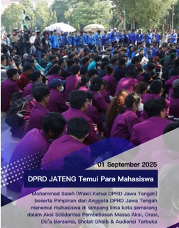 SEMARANG, liputanbangsa.com – Sejumlah pimpinan DPRD Provinsi Jawa Tengah menjumpai ratusan mahasiswa se-Kota Semarang di Lapangan Simpang Lima, Kota Semarang, Senin, 1 September 2025.