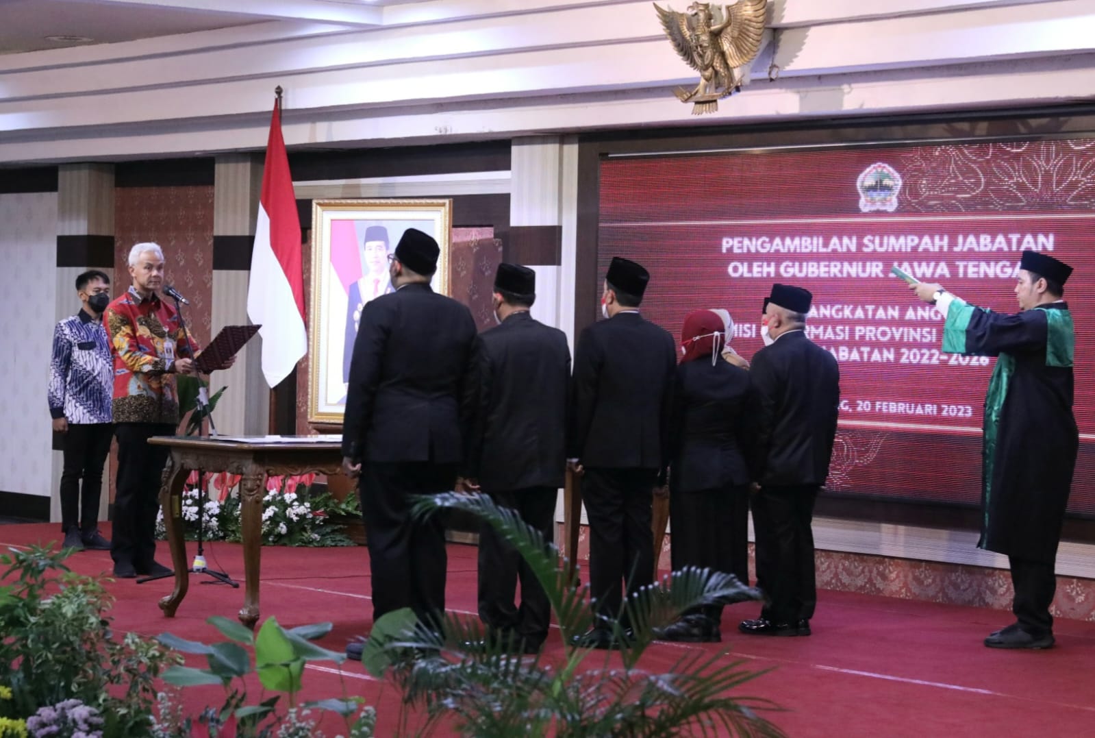 SEMARANG, liputanbangsa.com – Ganjar Pranowo selaku Gubernur Jawa Tengah hadir di acara Pengambilan Sumpah Jabatan dan Melantik Anggota Komisi Informasi Provinsi Jawa Tengah Masa Jabatan 2022-2026, di Gedung Gradhika Bhakti Praja, Senin (20/2).