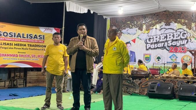 “Grebeg Pasar Sayur dan Buah ini, bagian dari sosialisasi media tradisional dalam memperkuat fungsi dan peran media tradisional di daerah. Sekaligus ajang silahturahmi bersama masyarakat dan para seniman di Kabupaten Batang. Dimeriahkan oleh tari lengger, kuda lumping, dan kesenian tradisional lainnya yang perlu kita lestarikan,” kata politikus Golkar, Dapil 13 meliputi Kabupaten Batang, Kab. Pekalongan, Kota Pekalongan, dan Pemalang, dalam pembukaan Grebeg Pasar Buah dan Sayur, di Pasar Bawang, Kabupaten Batang Jumat (17/2/2023) malam.