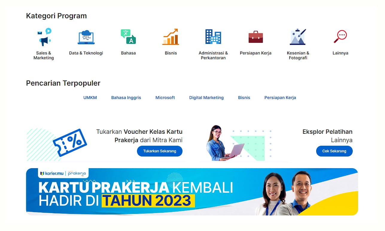 Untuk katagori pelatihan bisa dicek melalui situs Platform Digital yang menjadi mitra prakerja.