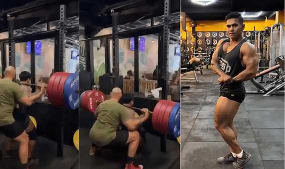 Dalam proses mengangkat beban tersebut, Justyn terlihat kesusahan untuk berdiri tegak. Sosok yang juga merupakan selebgram tersebut terjatuh.