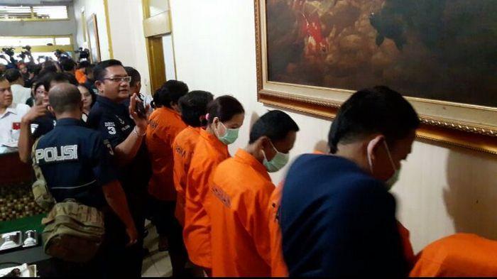 Pukul 11.08 WIB dua tersangka dihadirkan di TKP dengan tangan diborgol. Kedua tersangka mengenakan baju berwarna merah berjilbab hitam dan abu-abu. Jajaran kepolisian juga berada di lokasi.
