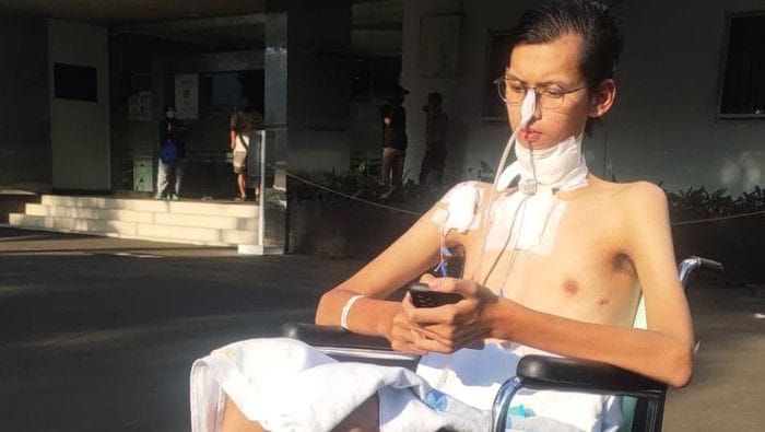 “(Dokter) memvonis anak saya bahwa tenggorokannya atau tulang muda di tenggorokannya putus dan berantakan sampai lepas dari yang namanya luring-luringnya atau kayak jakunnya itu lepas,” kata Fatih.