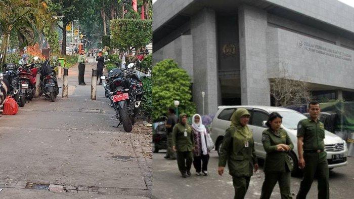 Berdasarkan pantauan media, di depan Gedung DPRD DKI Jakarta, Jalan Kebon Sirih, Jakarta Pusat, Rabu (23/8/2023), petugas keamaan (pamdal) mengarahkan kendaraan roda dua maupun roda empat yang hendak memasuki gedung untuk parkir di tempat lain.