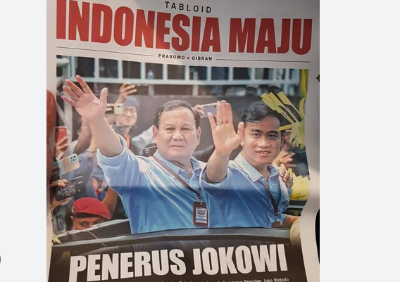Sampun tabloid tersebut terpampang potret Prabowo dan Gibran yang bertuliskan ‘Indonesia Maju, Prabowo – Gibran’.