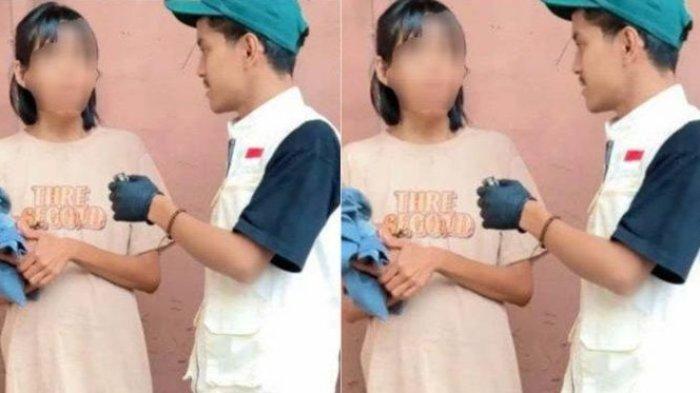 Beruntungnya di sana ada dua relawan pria dan wanita menolong wanita muda didiuga ODGJ tersebut.