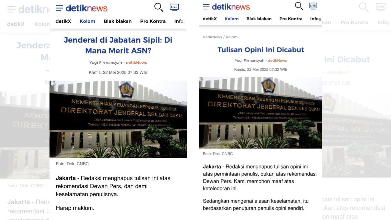 Artikel Kolumnis Detik Dihapus, AJI Desak Usut Kasus Teror : Kebebasan Pers Makin Terancam